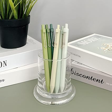 Write in style with our gel ink pens. Each set comes with 6 pens with a color theme to match your office. The pens come with a 0.5mm tip for fine writing. Smooth black ink that glides on paper easily and does not smear or smudge. The perfect stationery tool for taking notes, writing in your journal, signing important documents, or just plain sketching. The pens come with a convenient retractable design and a clip to allow you to clip the pens to your notebook, pocket or papers. Use these pens in your home or office.