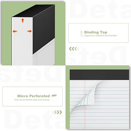 • [LINED LEGAL PADS]: The narrow-lined format offers the perfect balance between structure and pragmatic, allowing you to take notes, jot down ideas, or even write full-length pieces with ease. The quality of the paper is excellent, ensuring a smooth writing experience every time. These line note pads are perfect for writing notes, letters, and ideas. The white legal pad 8.5 x 11.75 inch are enough to record all your ideas, no more forgotten things.