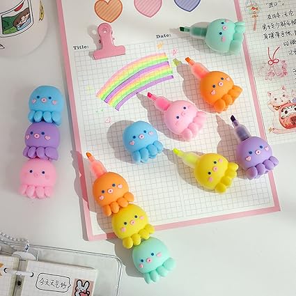 • 【Multipurpose】Cute octopus shaped highlighter, perfect for highlighting underlining or writing notes.