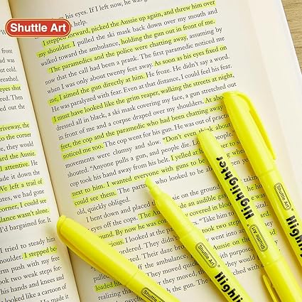 • NON-TOXIC & ACID-FREE: NON-TOXIC ink and narrow barrel shape of this highlighter set offers safe appliance and comfortable holding for both kids and adults emphasizing info at school, home or office. Shuttle Art highlighters conform to ASTM-D4236.